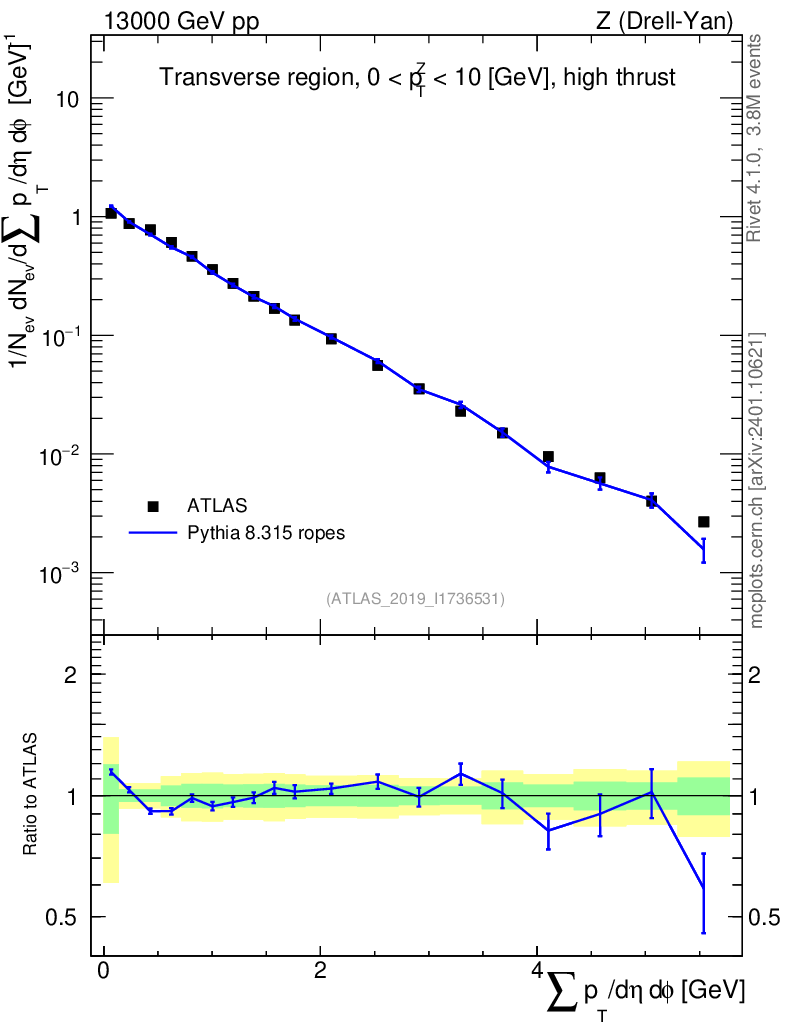 Lines: data, pythia8 8.315 ropes |