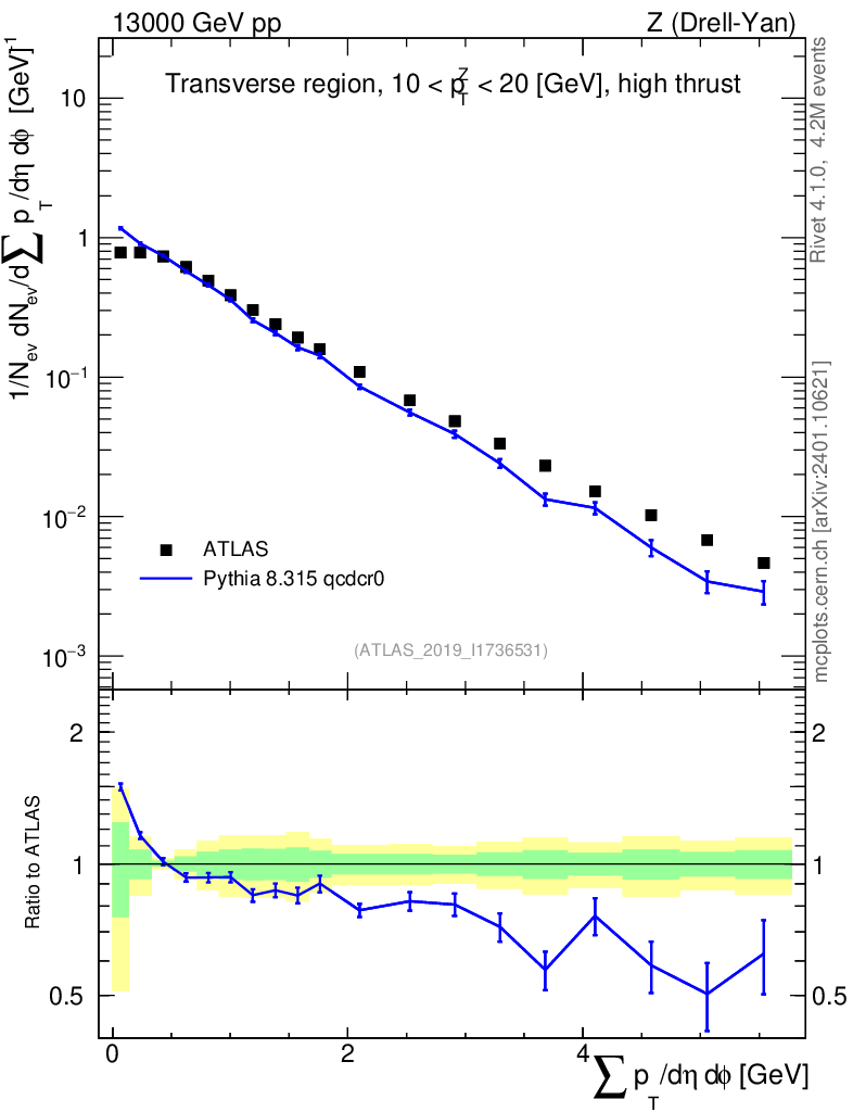 Lines: data, pythia8 8.315 qcdcr0 |