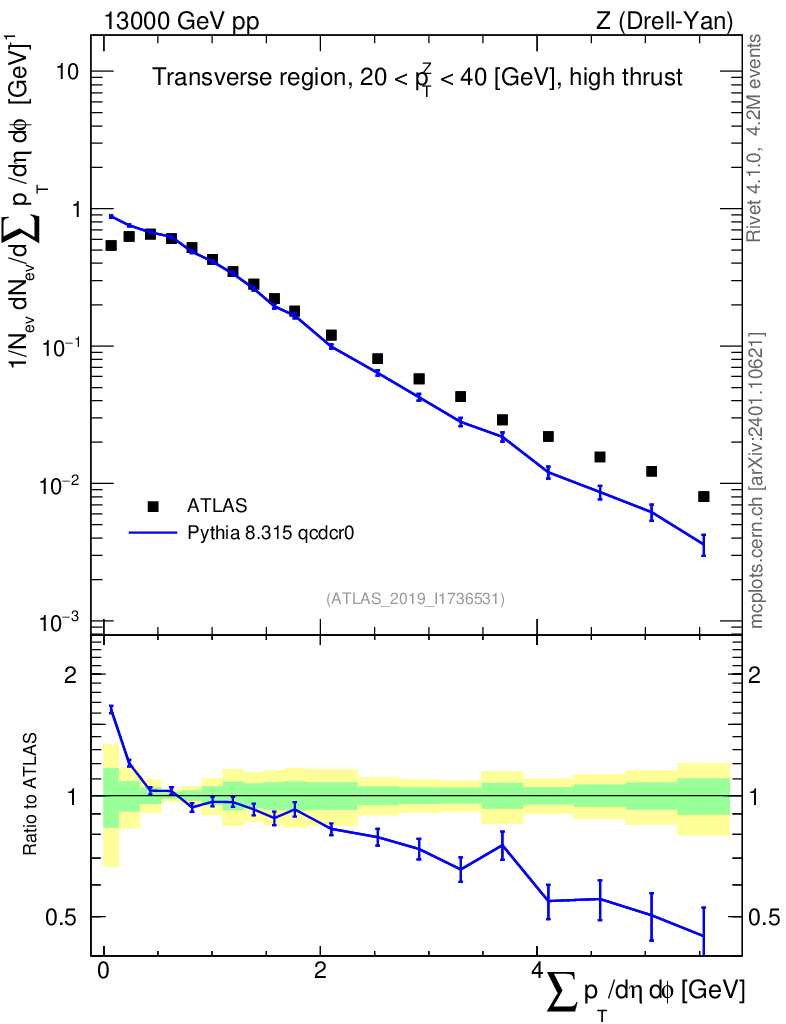 Lines: data, pythia8 8.315 qcdcr0 |