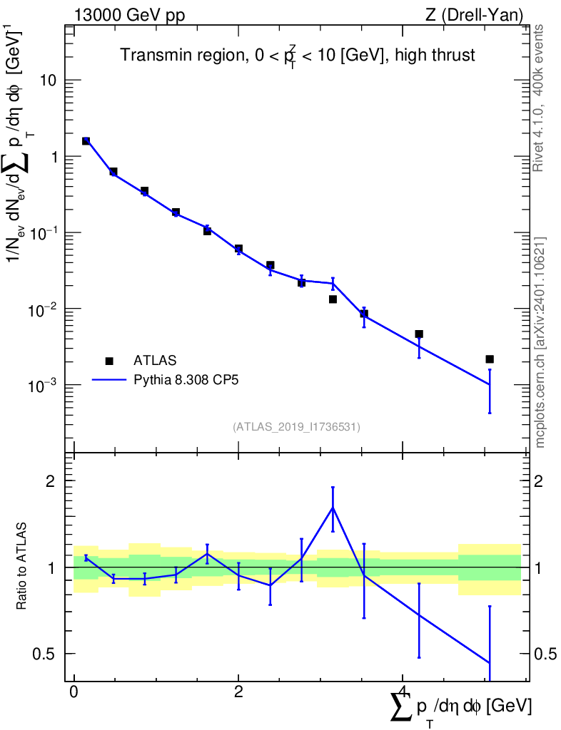 Lines: data, pythia8 8.308 CP5 |