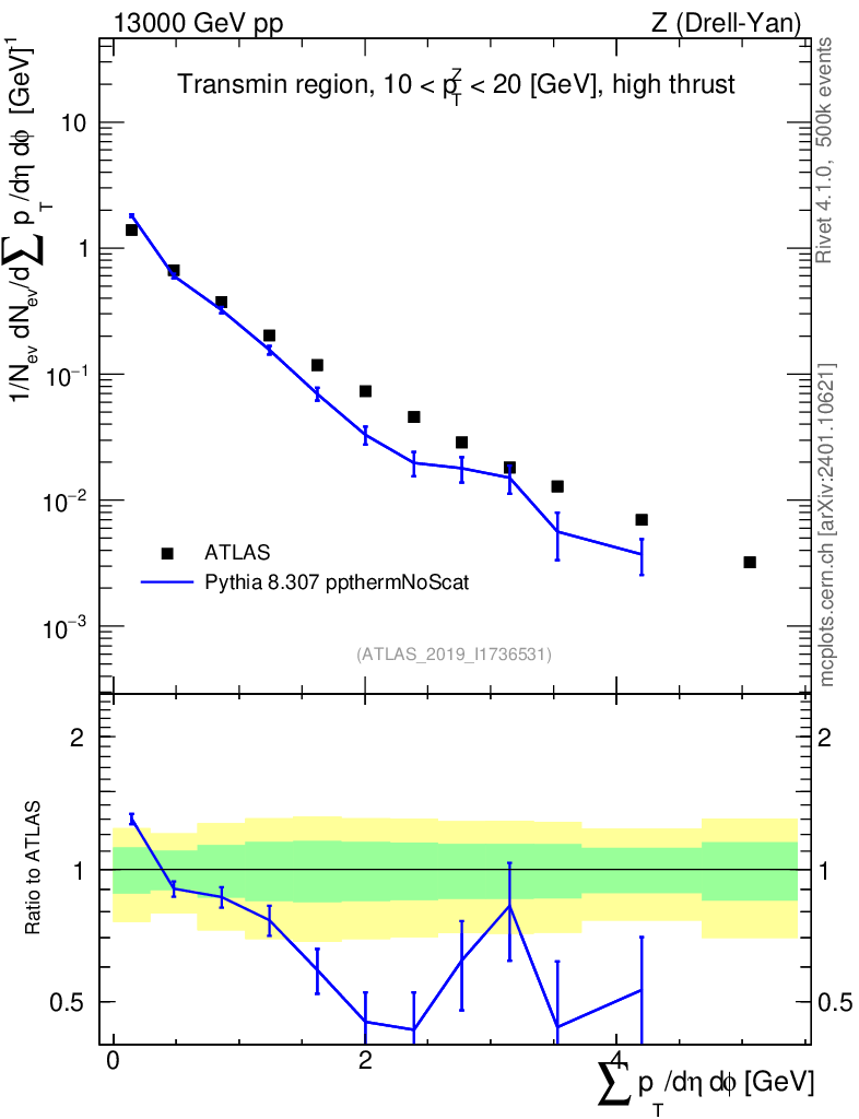 Lines: data, pythia8 8.307 ppthermNoScat |