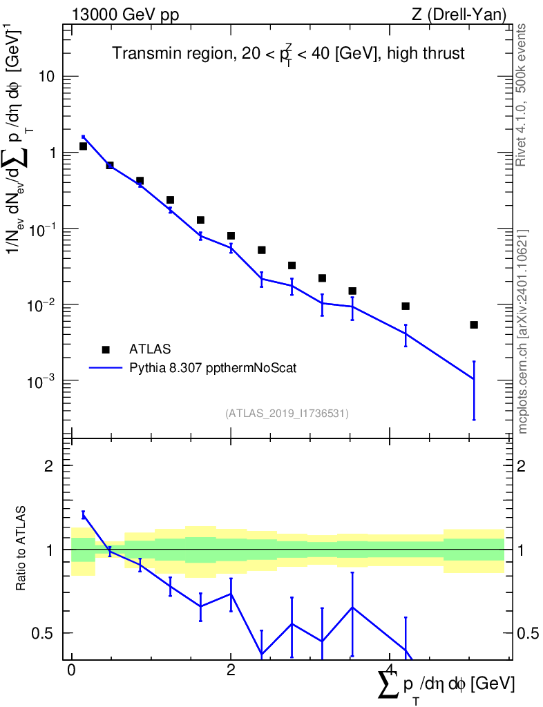 Lines: data, pythia8 8.307 ppthermNoScat |