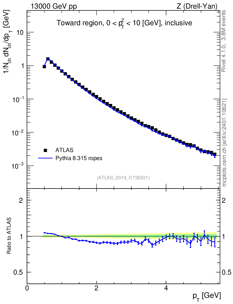 Lines: data, pythia8 8.315 ropes |
