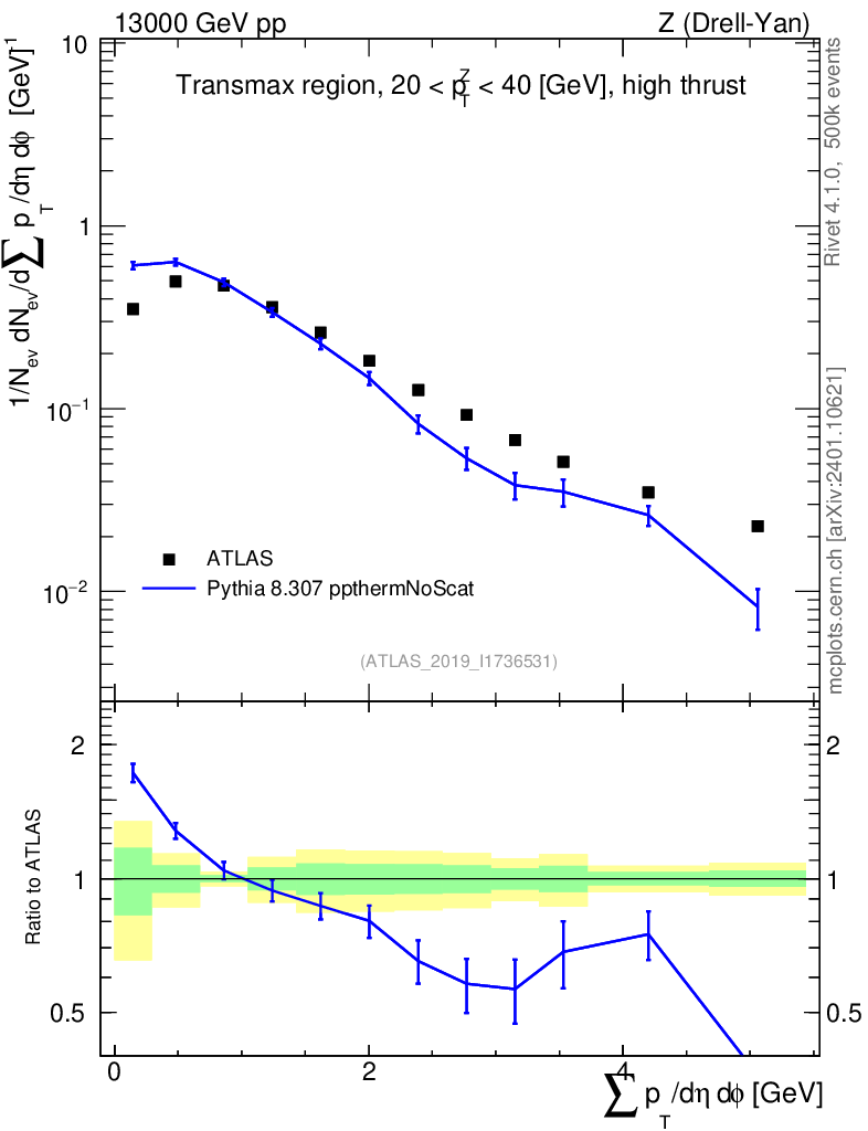 Lines: data, pythia8 8.307 ppthermNoScat |