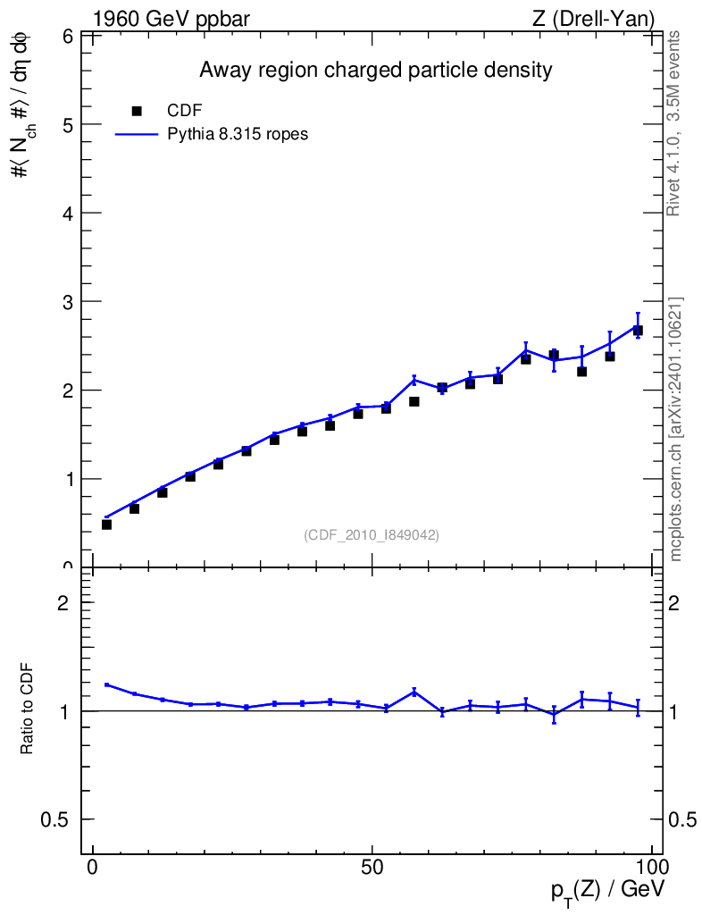 Lines: data, pythia8 8.315 ropes |