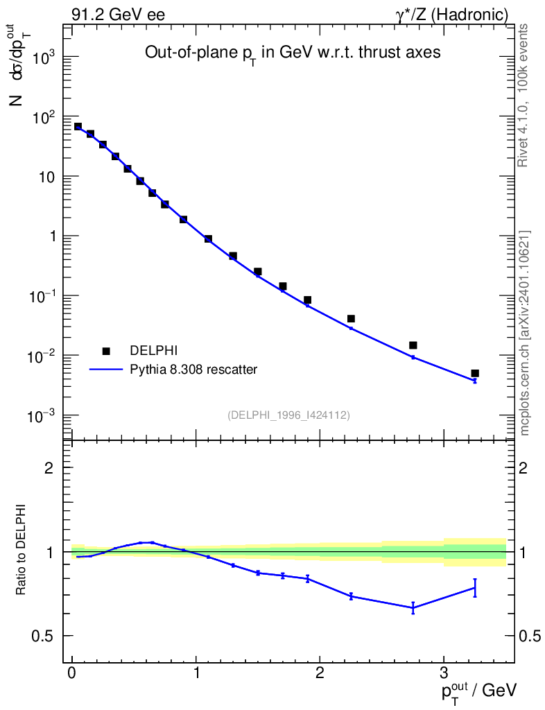 Lines: data, pythia8 8.308 rescatter |