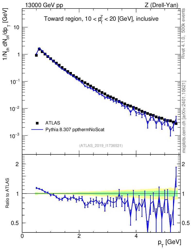 Lines: data, pythia8 8.307 ppthermNoScat |