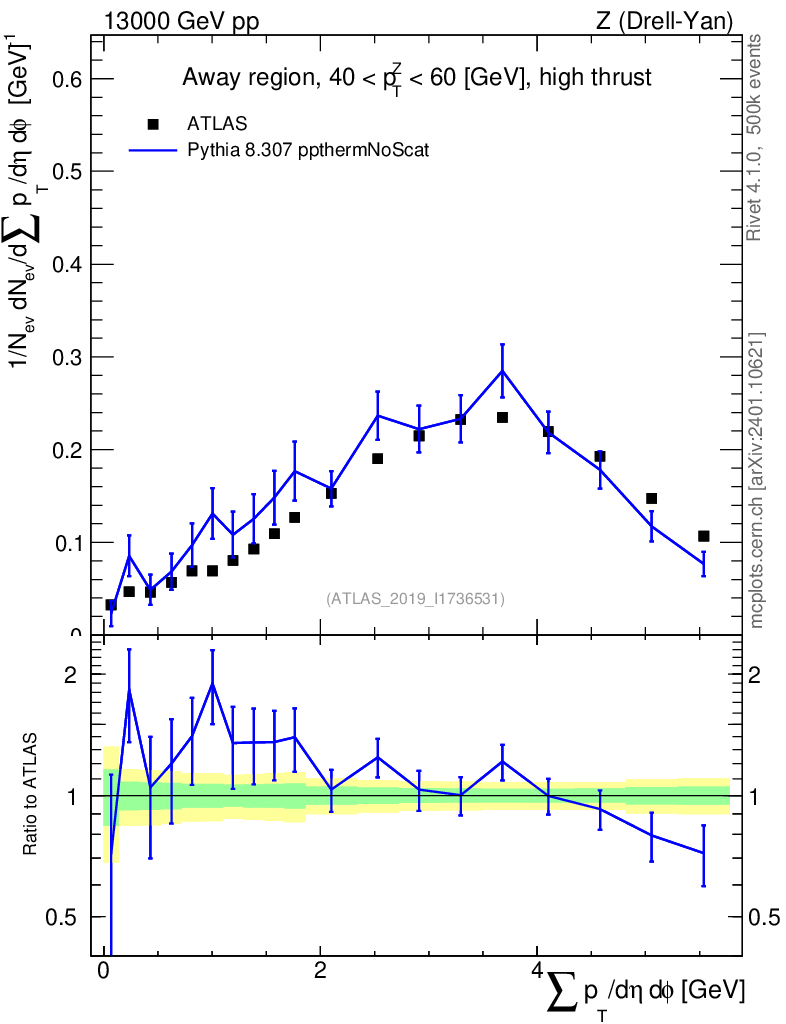 Lines: data, pythia8 8.307 ppthermNoScat |