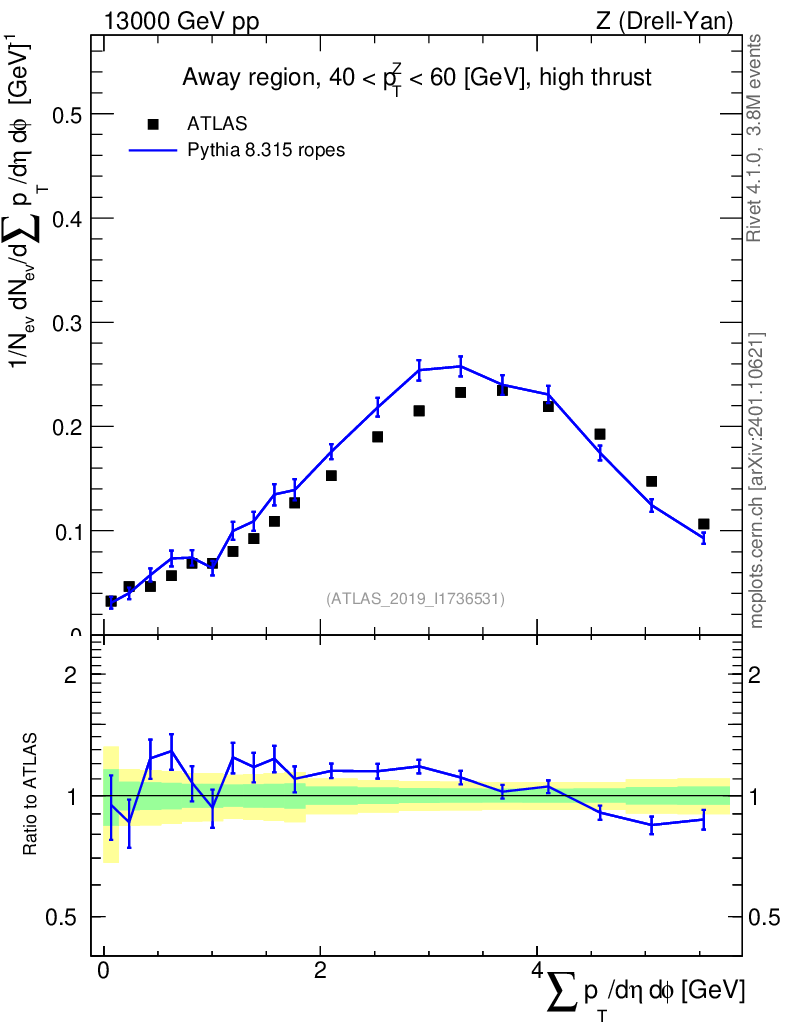 Lines: data, pythia8 8.315 ropes |
