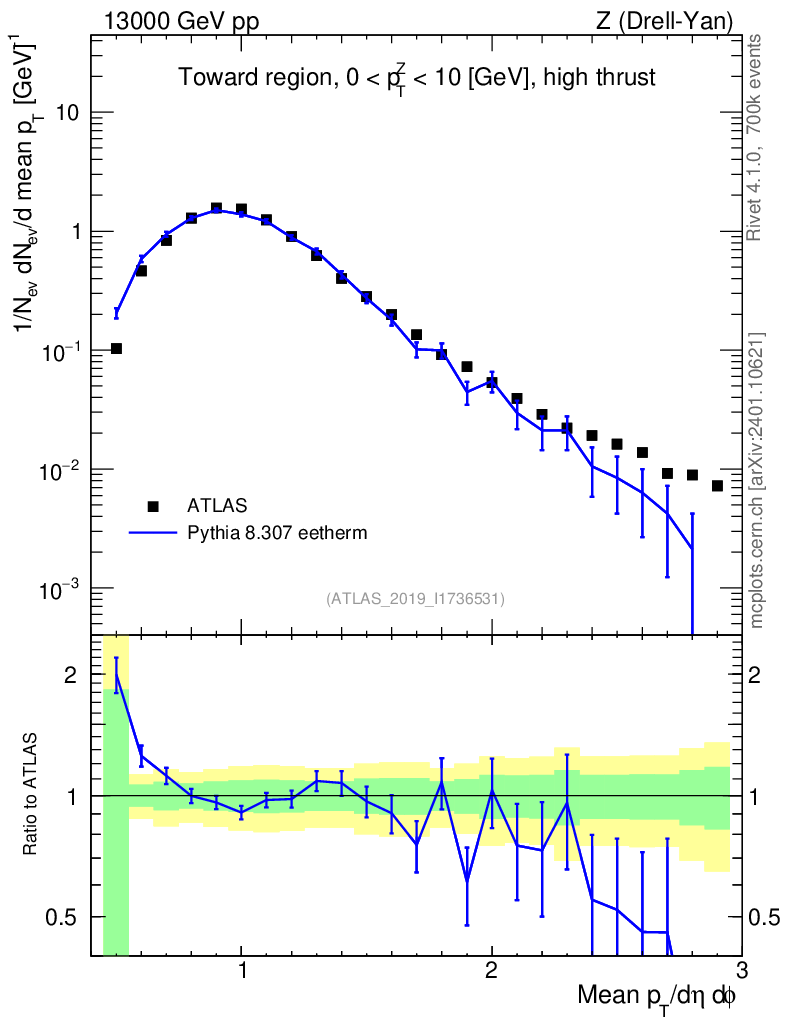 Lines: data, pythia8 8.307 eetherm |