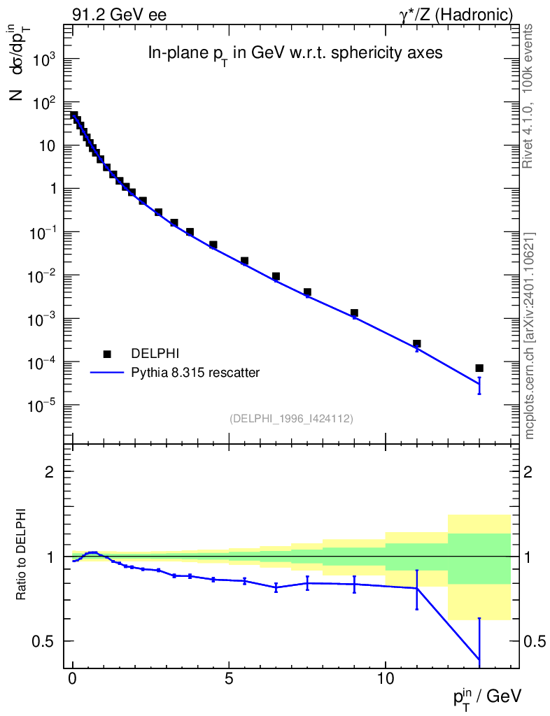 Lines: data, pythia8 8.315 rescatter |