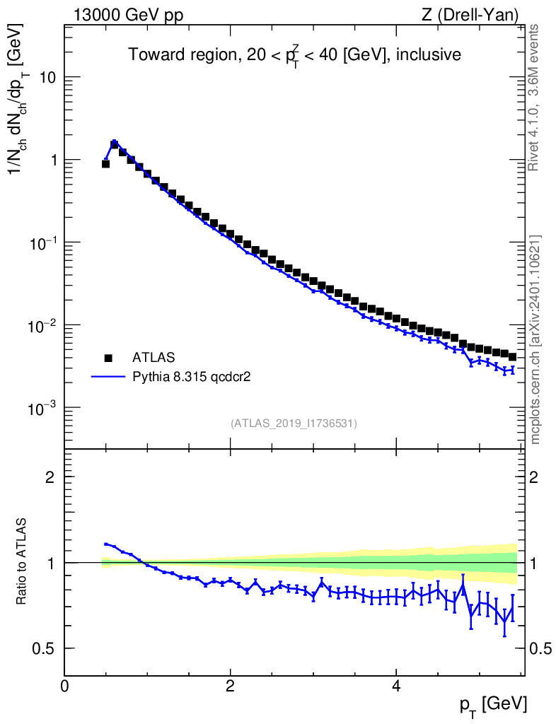 Lines: data, pythia8 8.315 qcdcr2 |