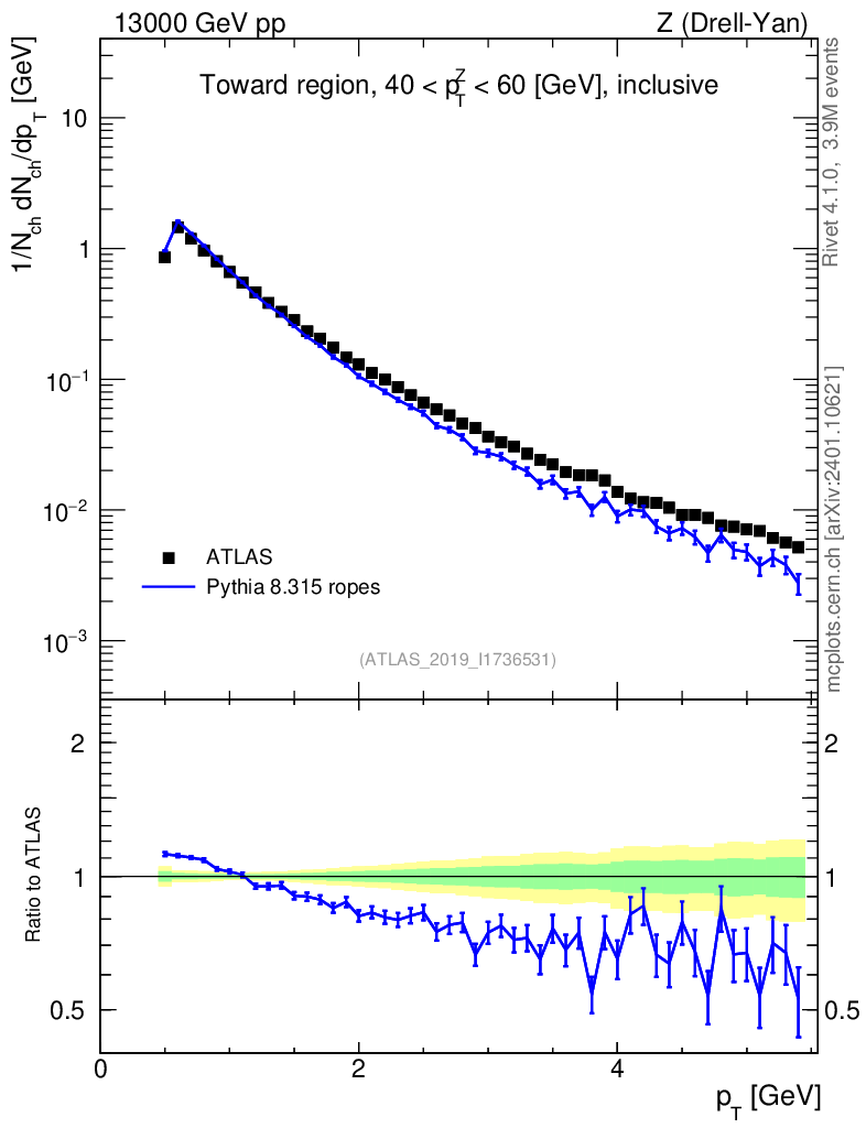 Lines: data, pythia8 8.315 ropes |