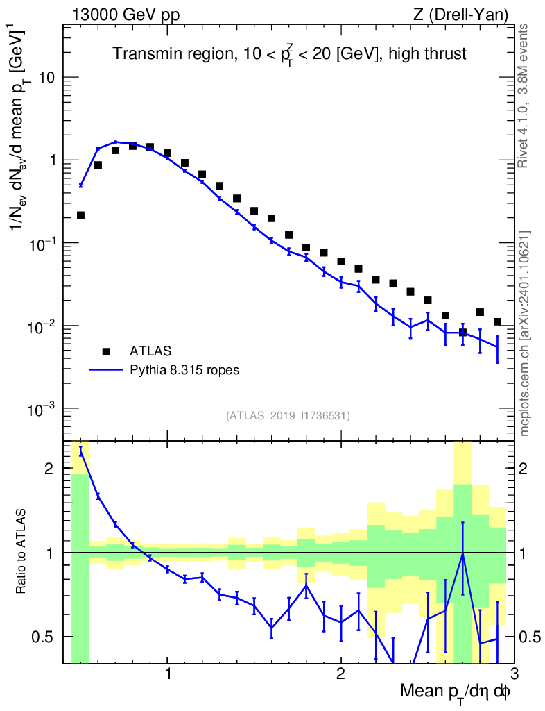 Lines: data, pythia8 8.315 ropes |