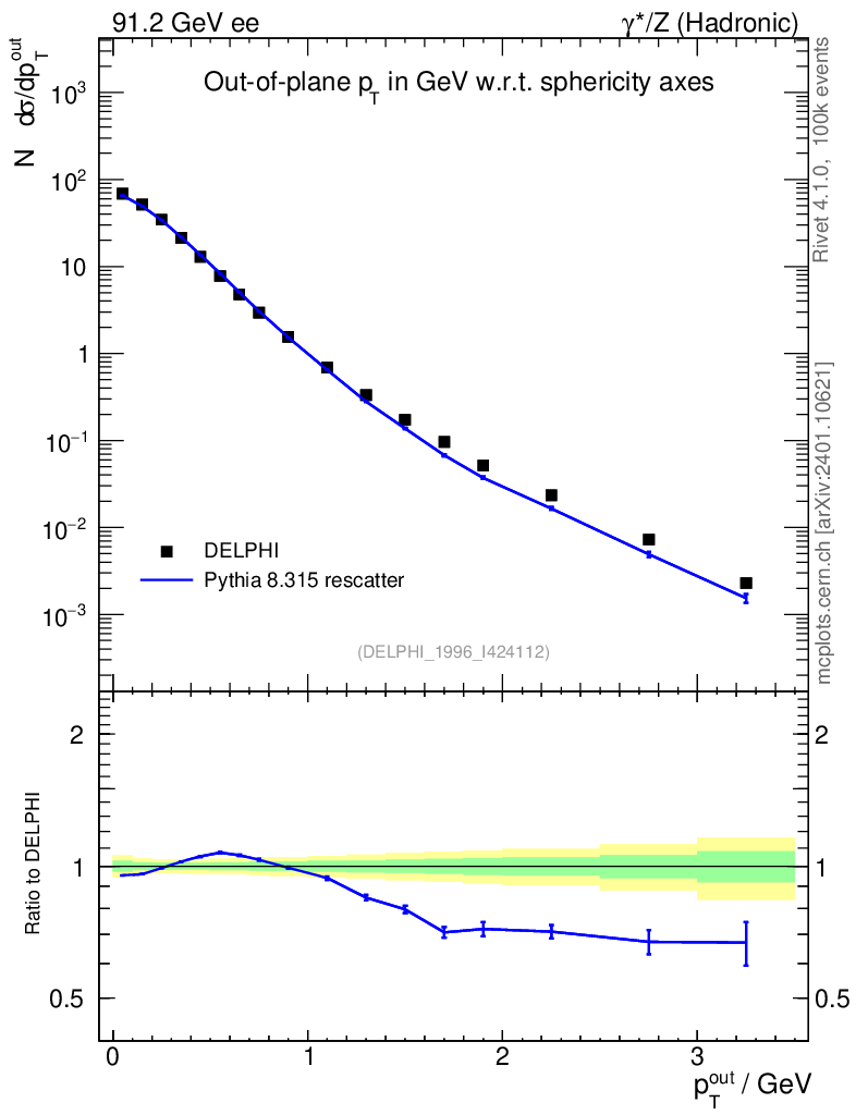 Lines: data, pythia8 8.315 rescatter |