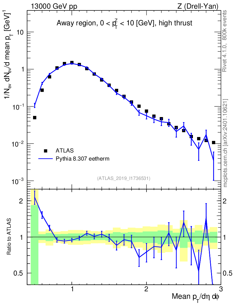 Lines: data, pythia8 8.307 eetherm |