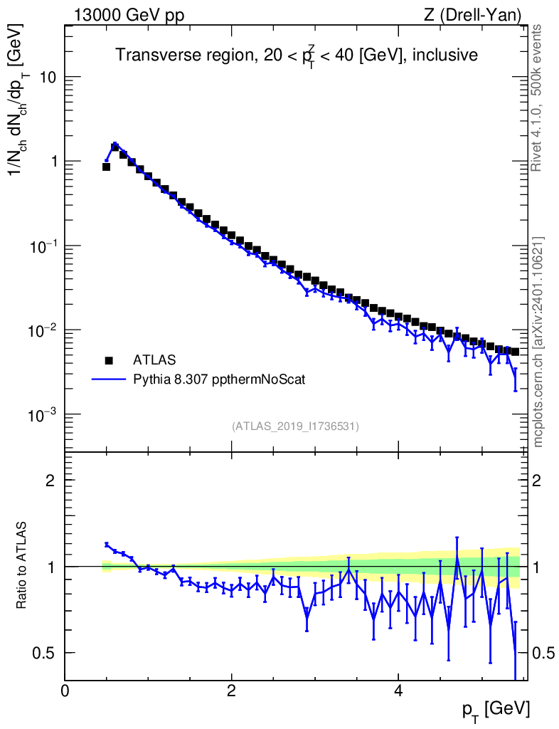 Lines: data, pythia8 8.307 ppthermNoScat |