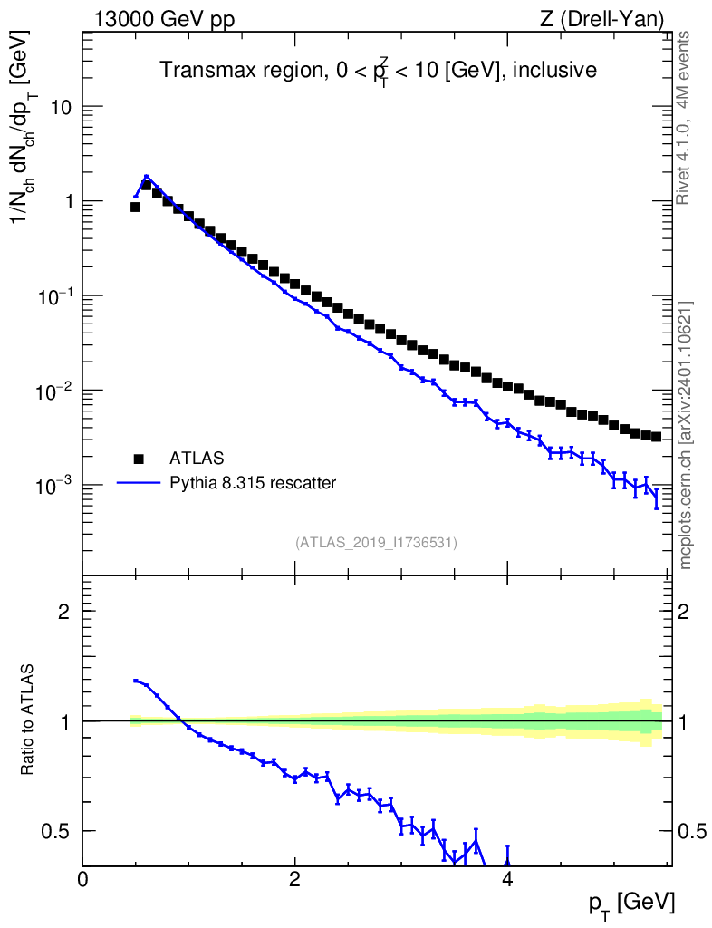 Lines: data, pythia8 8.315 rescatter |