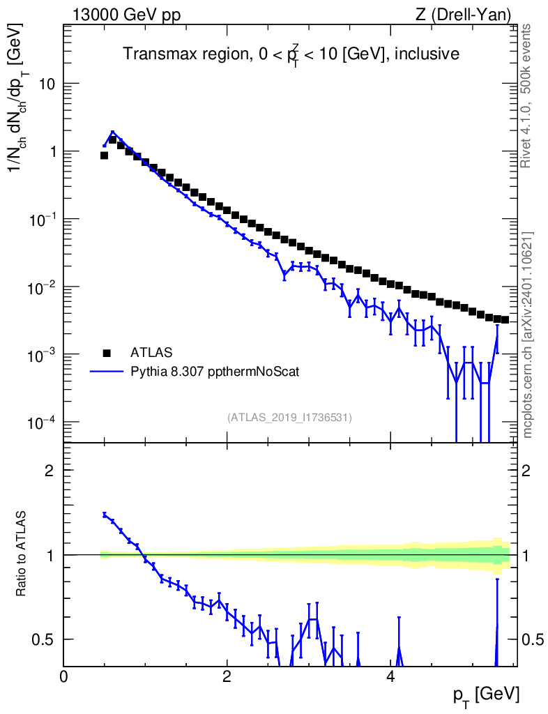 Lines: data, pythia8 8.307 ppthermNoScat |