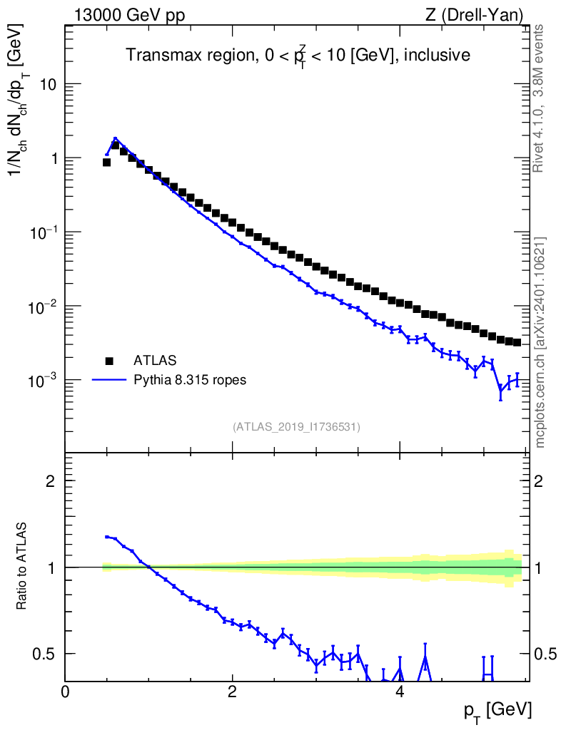 Lines: data, pythia8 8.315 ropes |