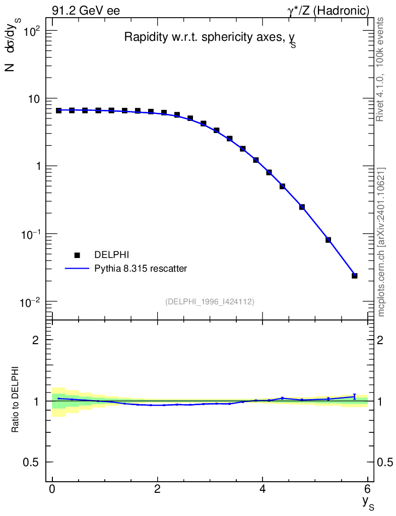 Lines: data, pythia8 8.315 rescatter |
