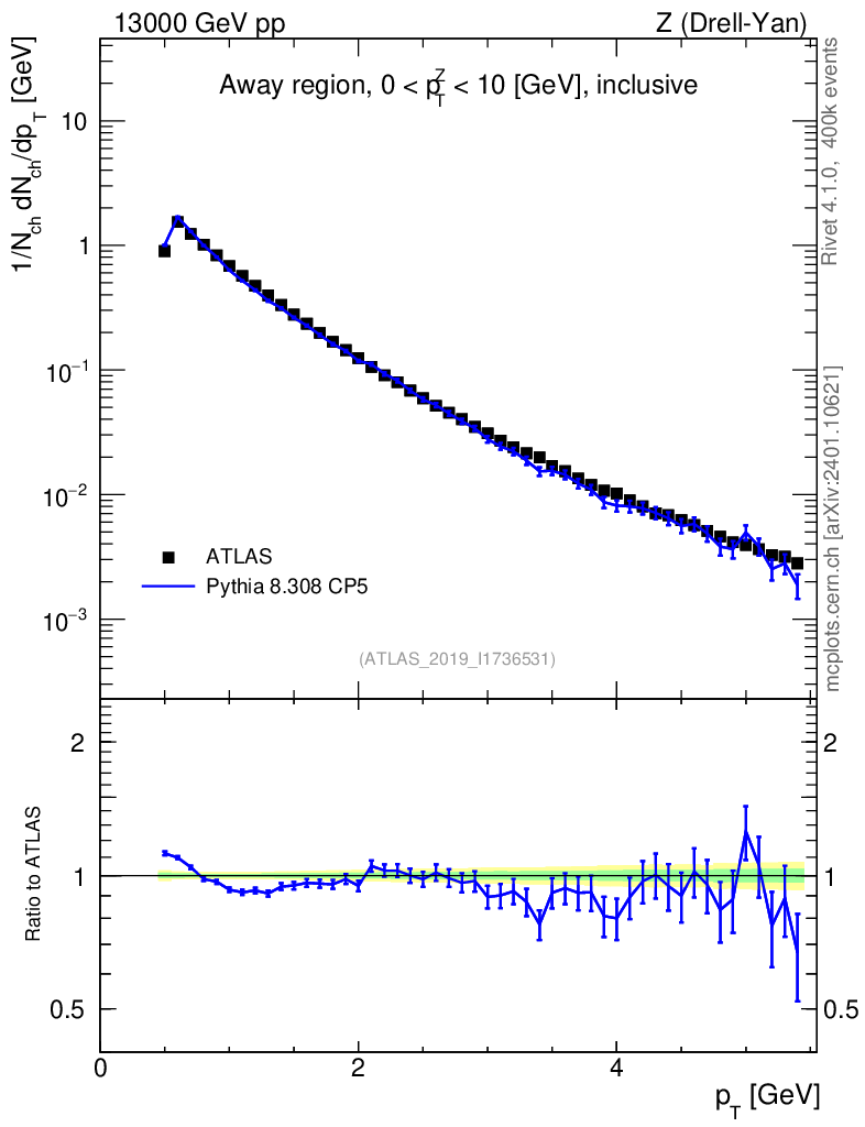 Lines: data, pythia8 8.308 CP5 |