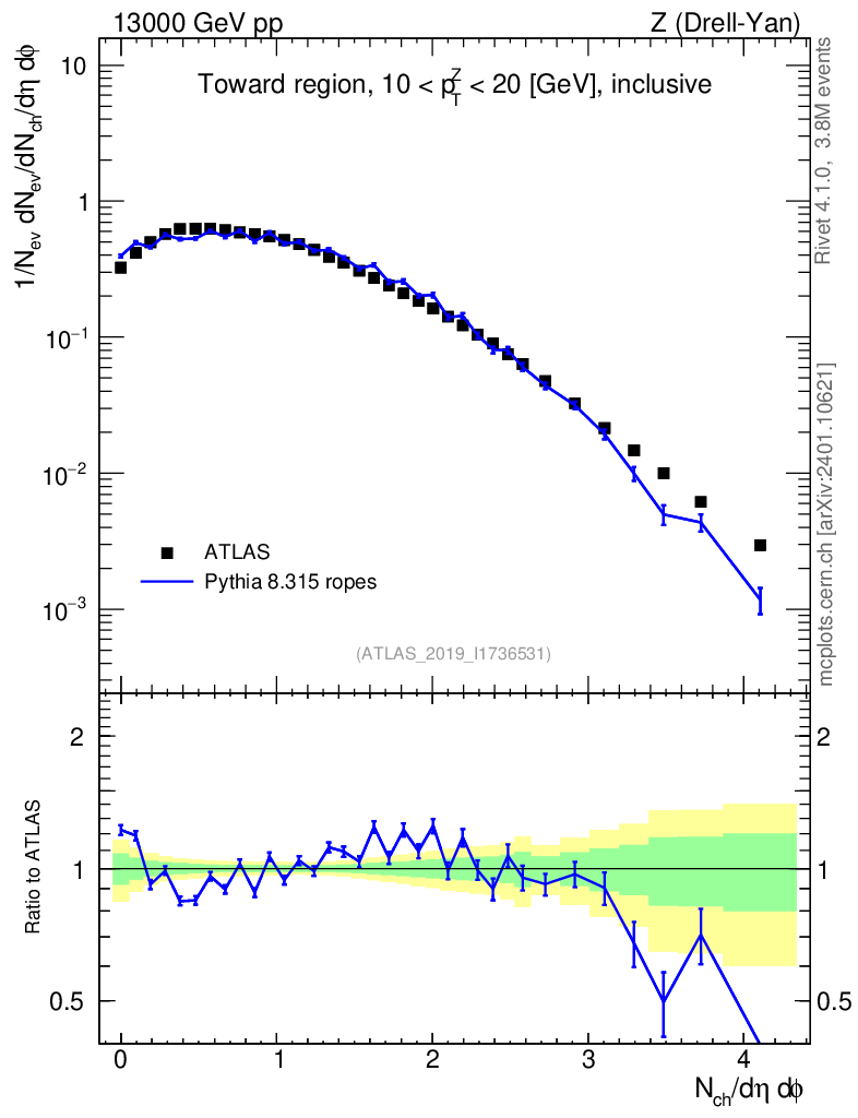 Lines: data, pythia8 8.315 ropes |