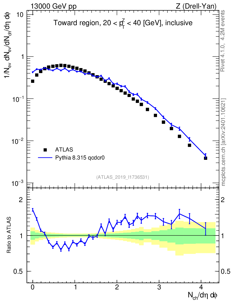 Lines: data, pythia8 8.315 qcdcr0 |
