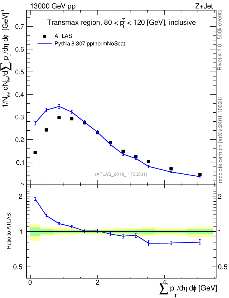 Lines: data, pythia8 8.307 ppthermNoScat |