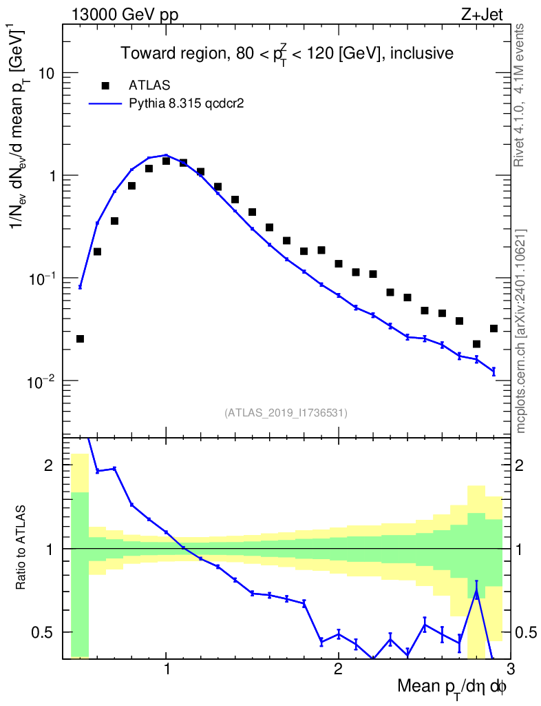 Lines: data, pythia8 8.315 qcdcr2 |