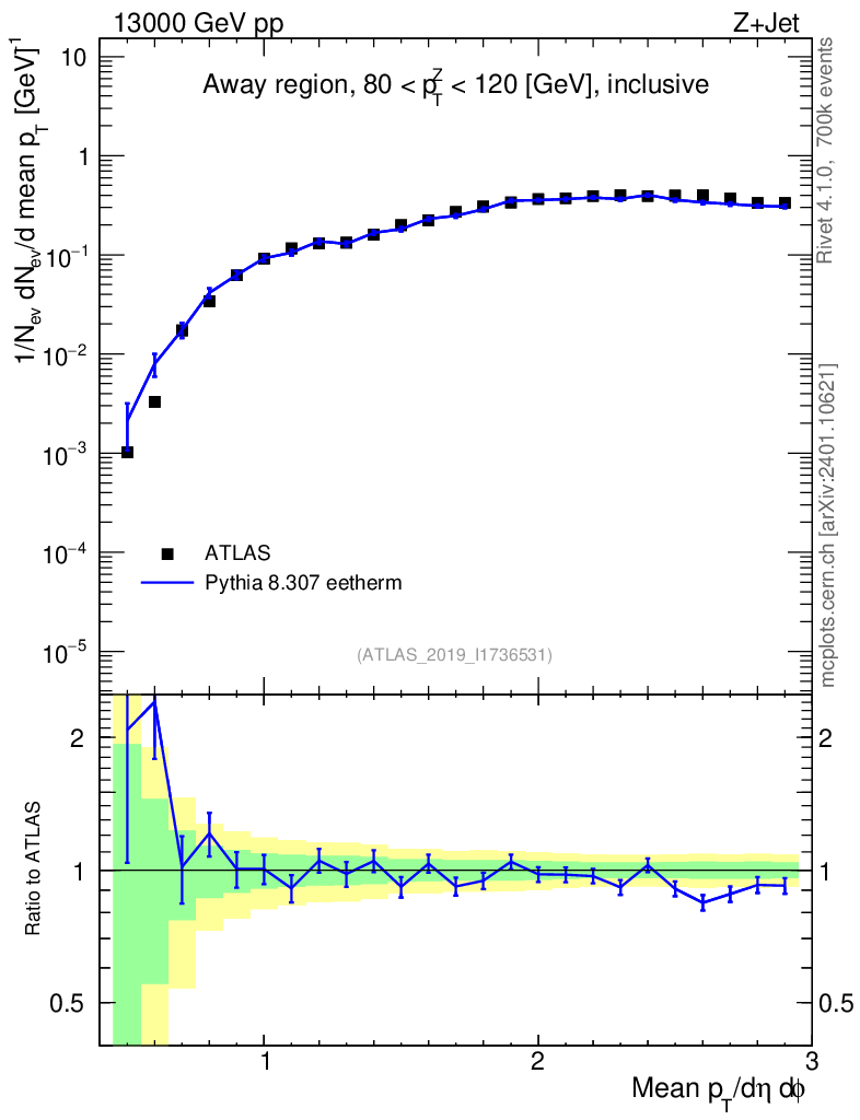 Lines: data, pythia8 8.307 eetherm |