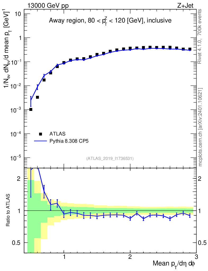 Lines: data, pythia8 8.308 CP5 | compare with other tunes