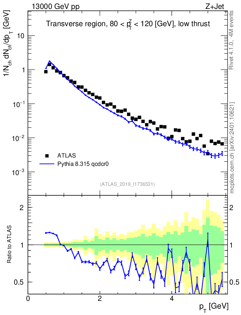 Lines: data, pythia8 8.315 qcdcr0 |