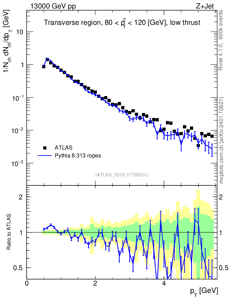 Lines: data, pythia8 8.313 ropes |