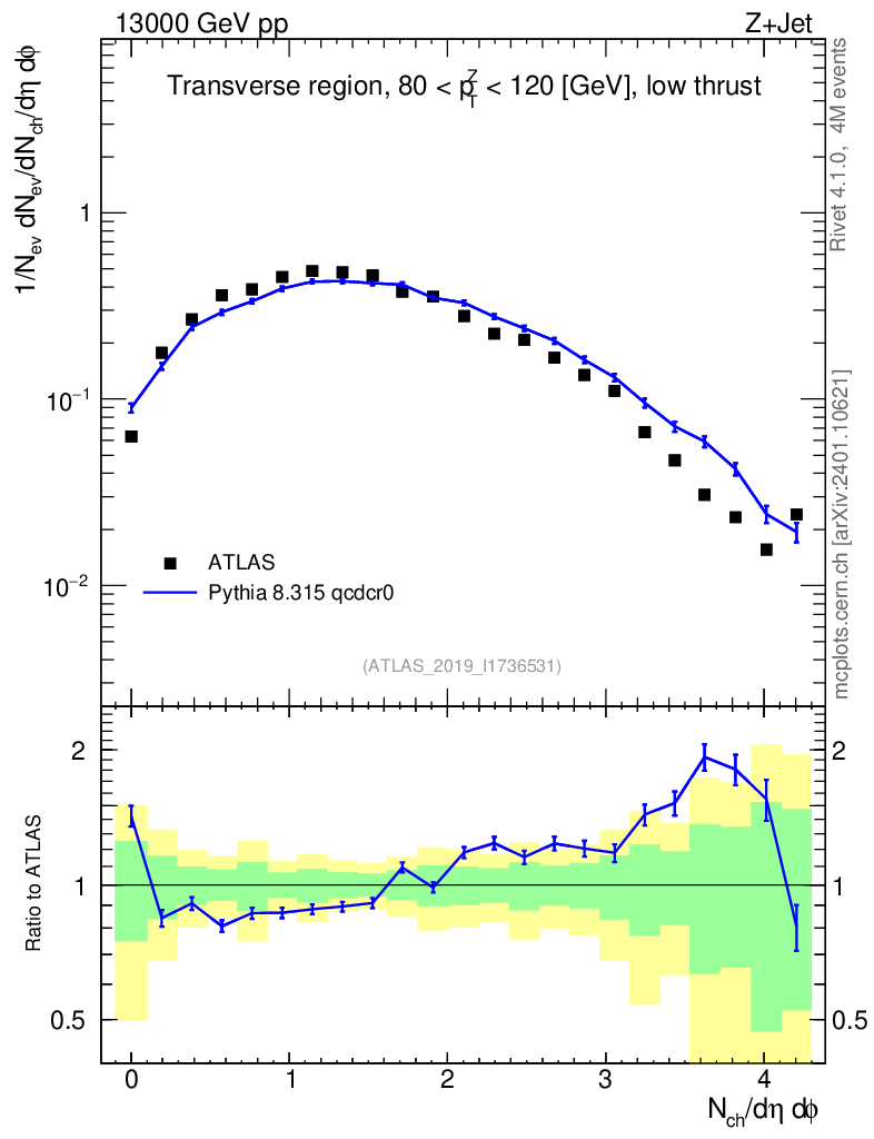 Lines: data, pythia8 8.315 qcdcr0 |