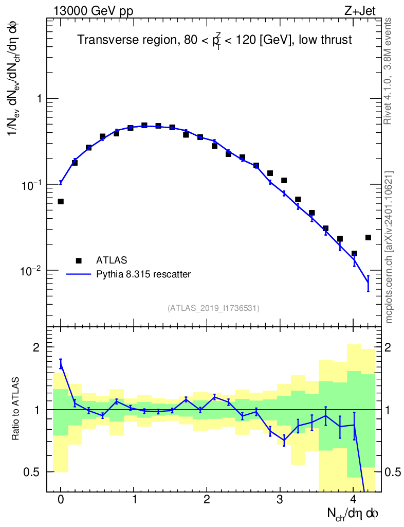 Lines: data, pythia8 8.315 rescatter |