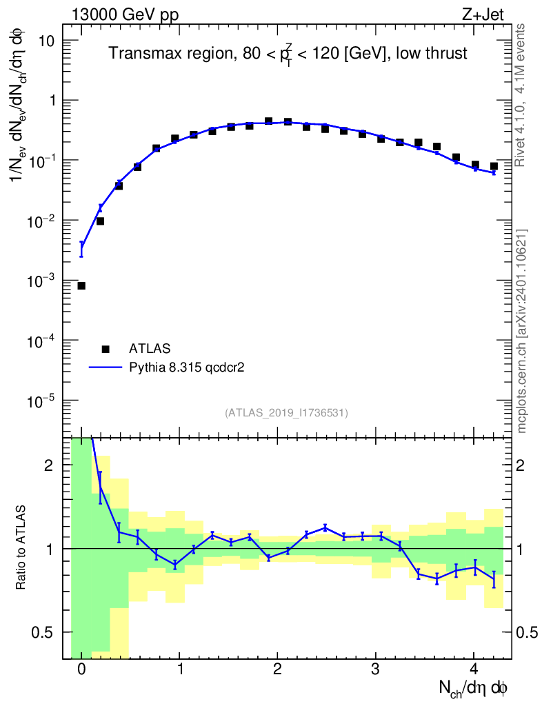 Lines: data, pythia8 8.315 qcdcr2 |