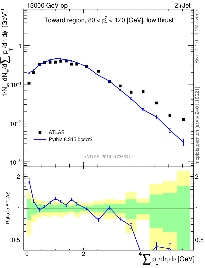 Lines: data, pythia8 8.315 qcdcr2 |