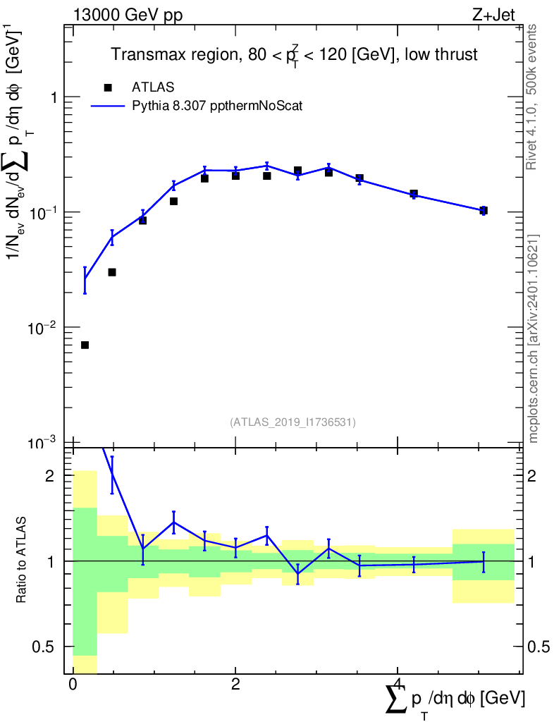 Lines: data, pythia8 8.307 ppthermNoScat |