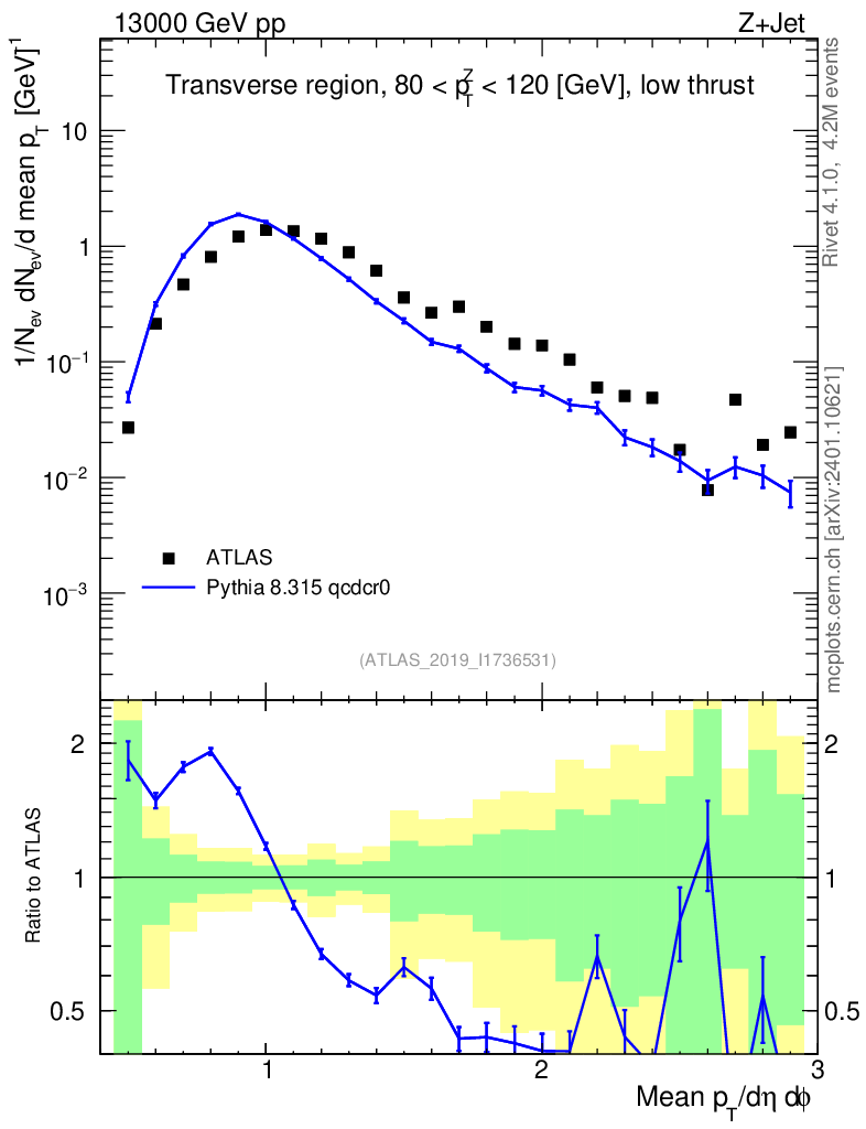 Lines: data, pythia8 8.315 qcdcr0 |