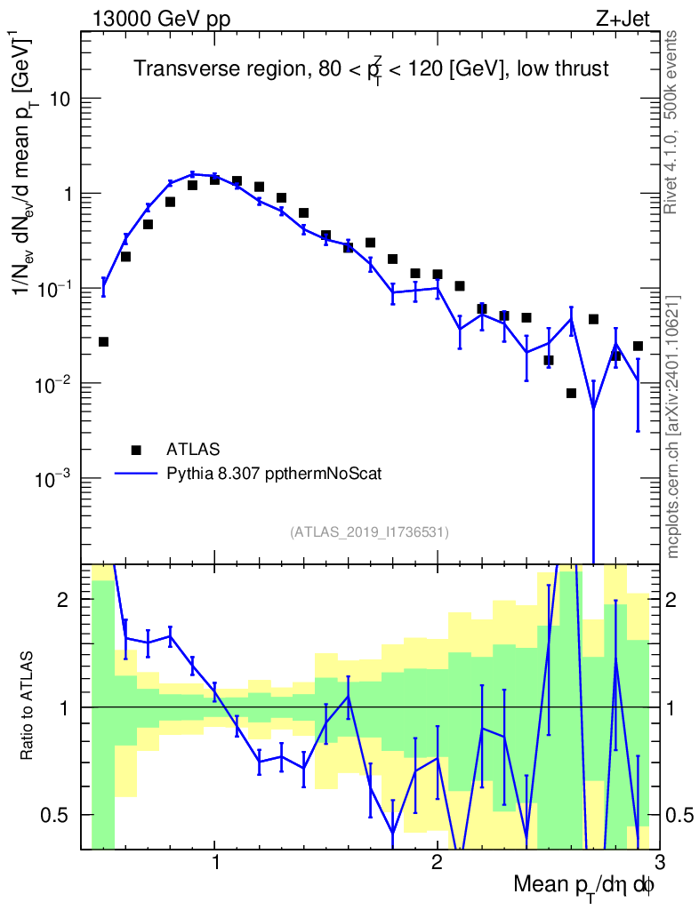 Lines: data, pythia8 8.307 ppthermNoScat |
