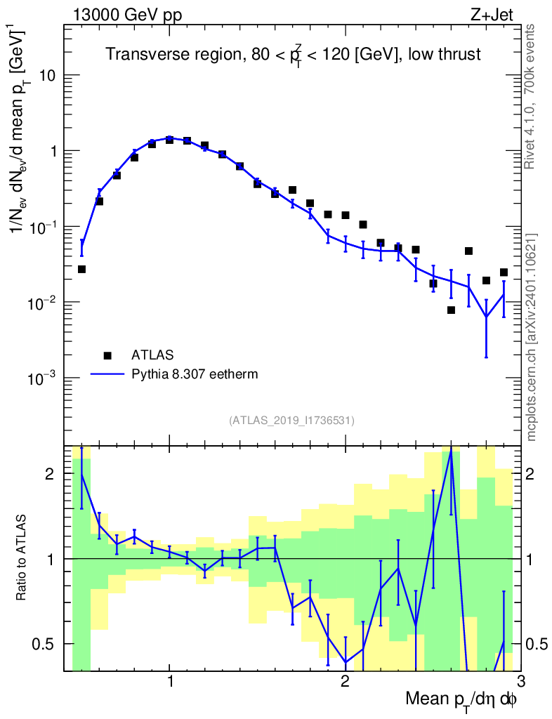 Lines: data, pythia8 8.307 eetherm |