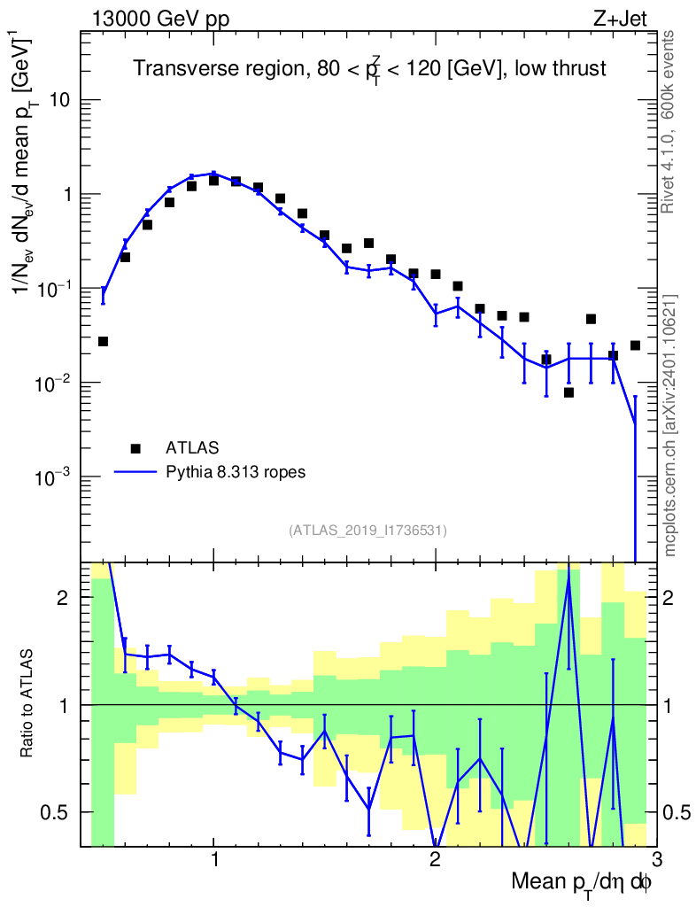 Lines: data, pythia8 8.313 ropes |