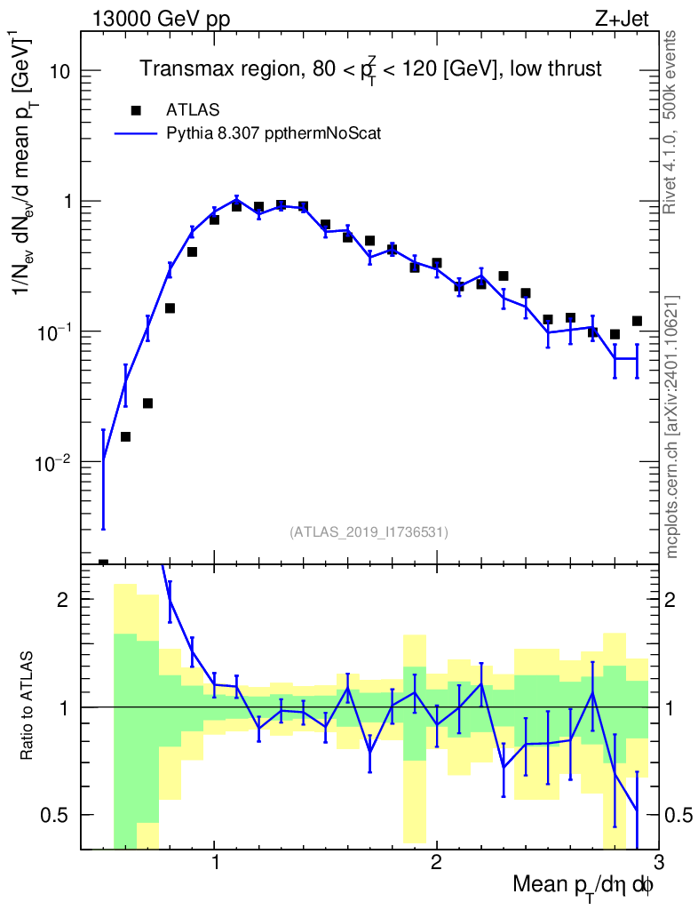 Lines: data, pythia8 8.307 ppthermNoScat |