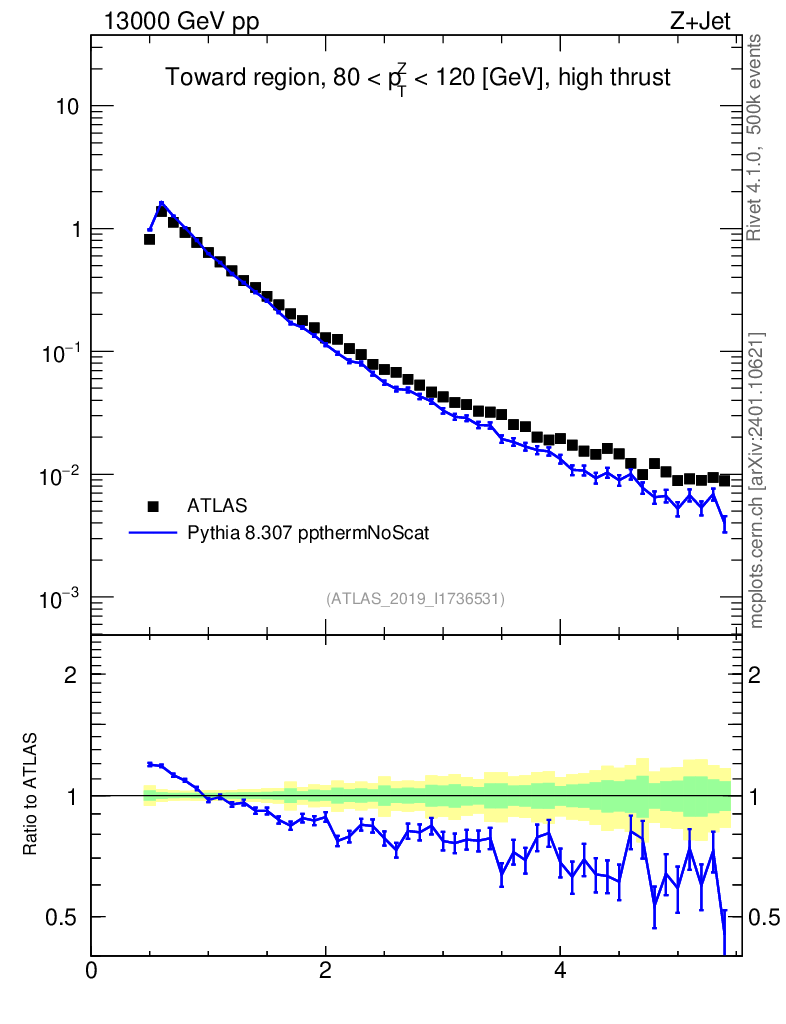 Lines: data, pythia8 8.307 ppthermNoScat |