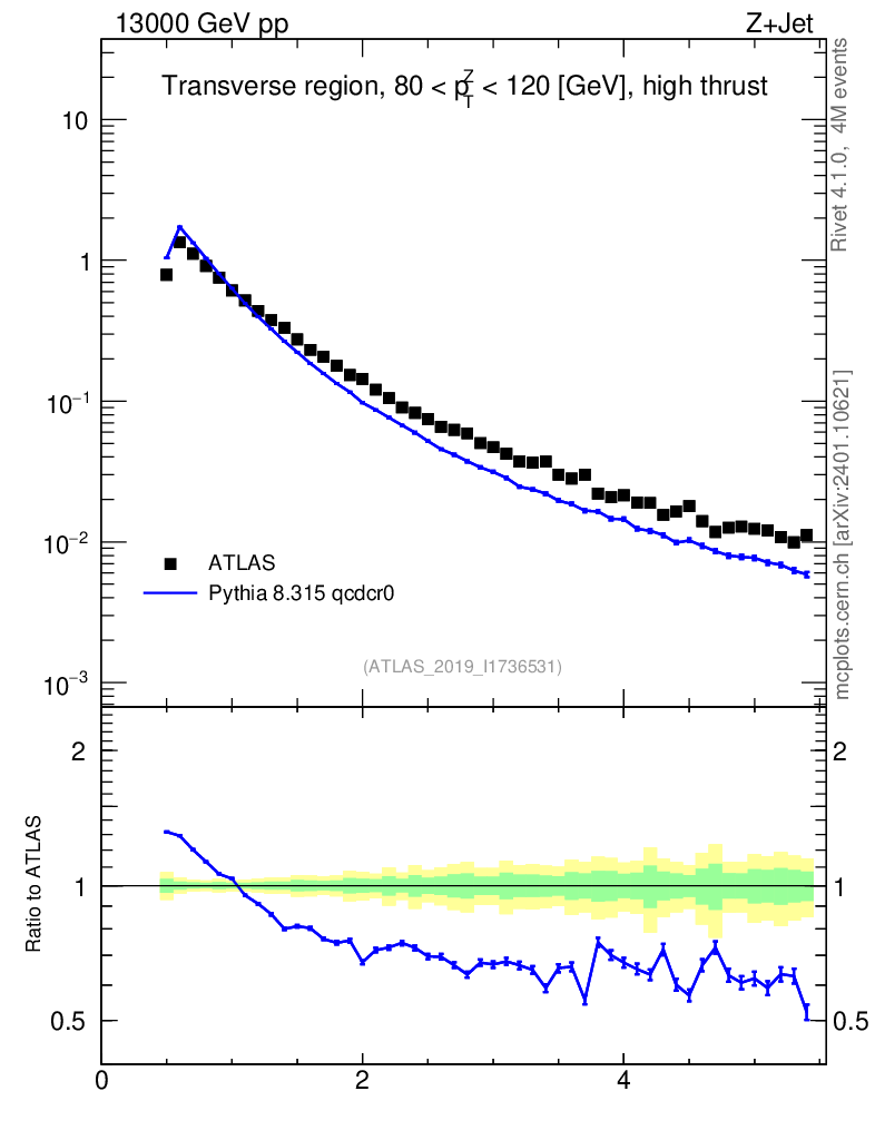 Lines: data, pythia8 8.315 qcdcr0 |