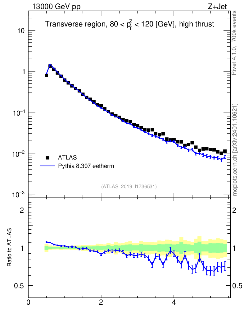 Lines: data, pythia8 8.307 eetherm |