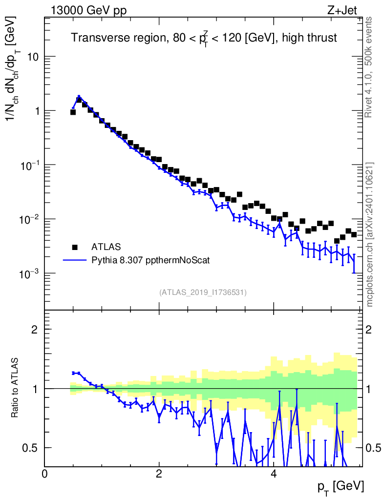 Lines: data, pythia8 8.307 ppthermNoScat |