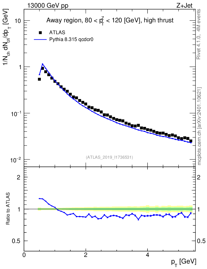 Lines: data, pythia8 8.315 qcdcr0 |