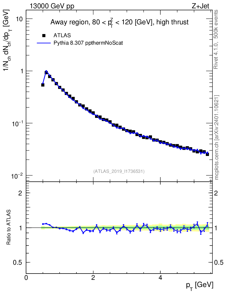 Lines: data, pythia8 8.307 ppthermNoScat |